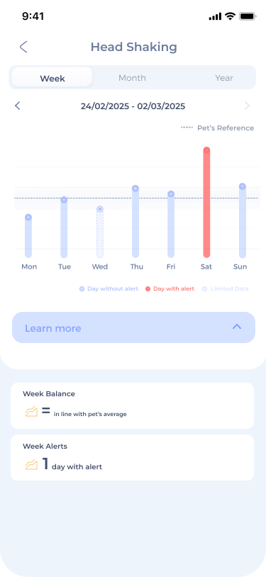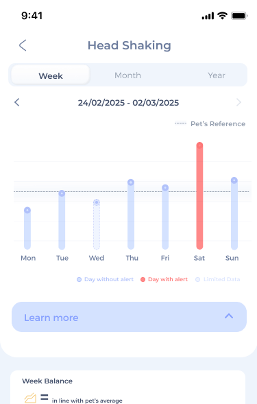 Unusual behaviors like constant ear scratching or obsessive paw licking can point to hidden discomfort and signal something else - allergies, infections, or even anxiety. Be immediately alerted of any meaningful changes and view their history over time.