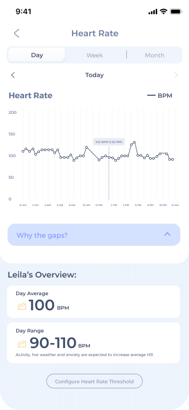 You’ll get alerts whenever Maven detects any unusual changes in health trends like resting respiratory rate, heart rate, activity, rest, or itch behaviors. Our sensor is built to catch the quiet changes before they become obvious.