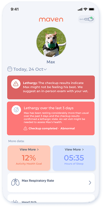 Energy dips or sudden bursts aren’t “just a phase.” A dog fitness tracker helps you see patterns, so you can support joint health, weight, mood, and overall wellbeing.How Maven solves it:
